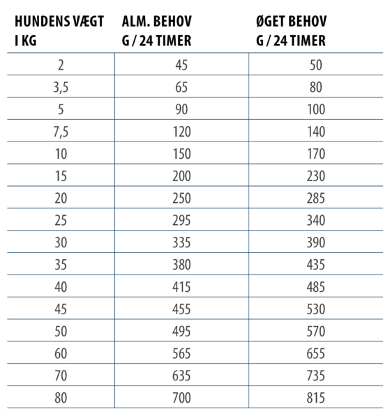 Anbefalet daglig fodermængde (g/dag):