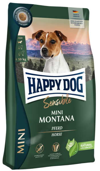 Komplet foder, velegnet til sensible voksne hunde, op til 10 kg. voksenvægt. Indeholder hestekød og glutenfri kartoffel.
