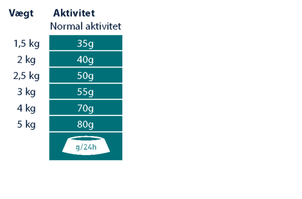 Anbefalet daglig fodermængde (g/dag):