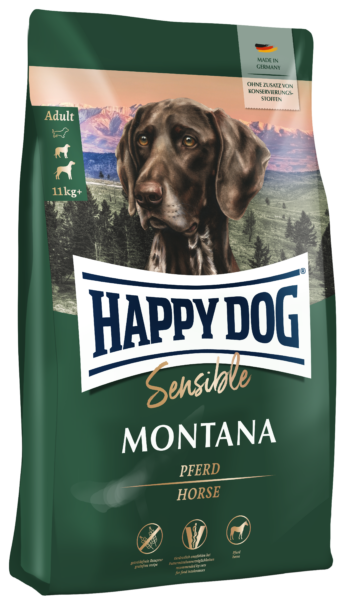 Komplet foder, velegnet til sensible voksne hunde, fra 11 kg. voksenvægt. Indeholder hestekød og glutenfri kartoffel