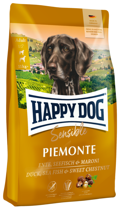 Komplet foder, velegnet til sensible voksne hunde, fra 11 kg. voksenvægt. Indeholder udsøgte italiensk kastanje, and og havfisk.