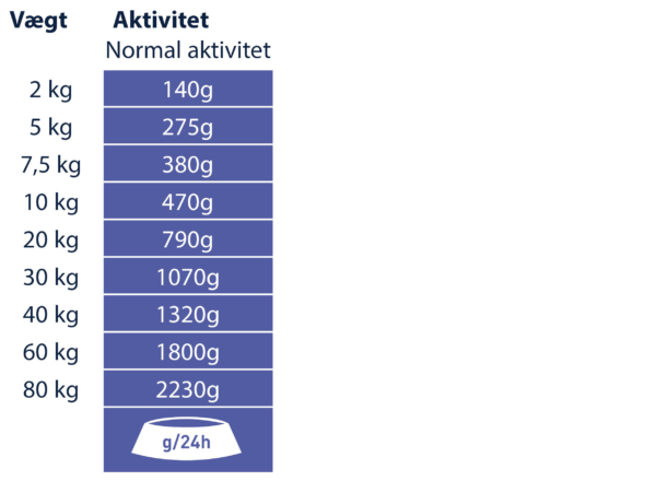 Anbefalet daglig fodermængde (g/dag):