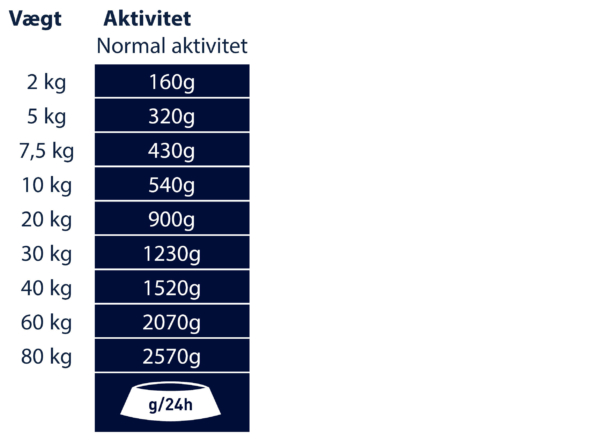 Bemærk: Vådfoder kan gives rent eller blandes med Happy Dog Flocken Mixer. Specifikationerne er vejledende. Individuelle behov afhænger af alder, race, vægt og aktivitetsniveau. Fodres ved stuetemperatur. Tilbyd altid frisk drikkevand.