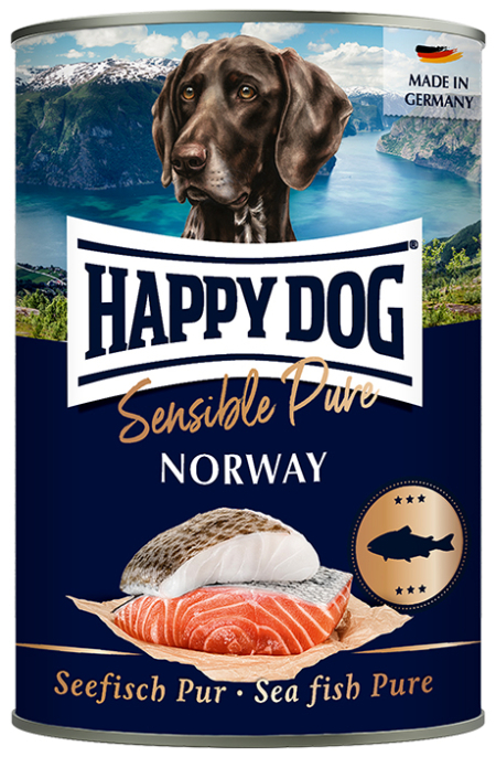 Ren nydelse af animalsk protein fra havfisk – til ægte kødelskere. Fremstillet i Tyskland af 100% kød og animalske biprodukter fra fisk. Indeholder ingen kornprodukter og er fremstillet uden tilsat sukker. Anvendelsen af fisk som eneste kilde til animalsk protein, gør den særlig velegnet til fodring af sensible hunde. Sensible Pure Norway kan bruges som fuldfoder eller i kombination med Happy Dog flagefoderblanding eller Happy Dog tørfoder.