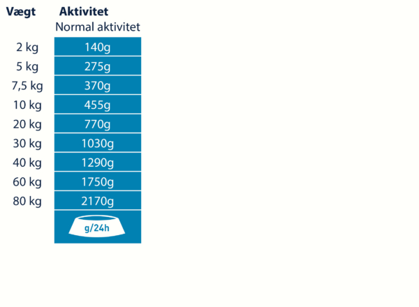 Anbefalet daglig fodermængde (g/dag):
